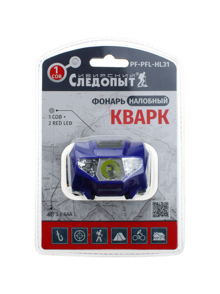 Фонарь головной 2свд+COB 3ААА Кварк Сибирский следопыт