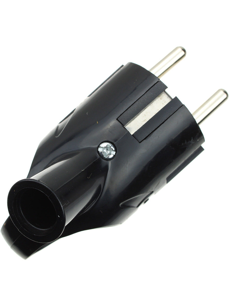Сетевая вилка угловая, UNIVersal, с ушком, черная, с заземлением