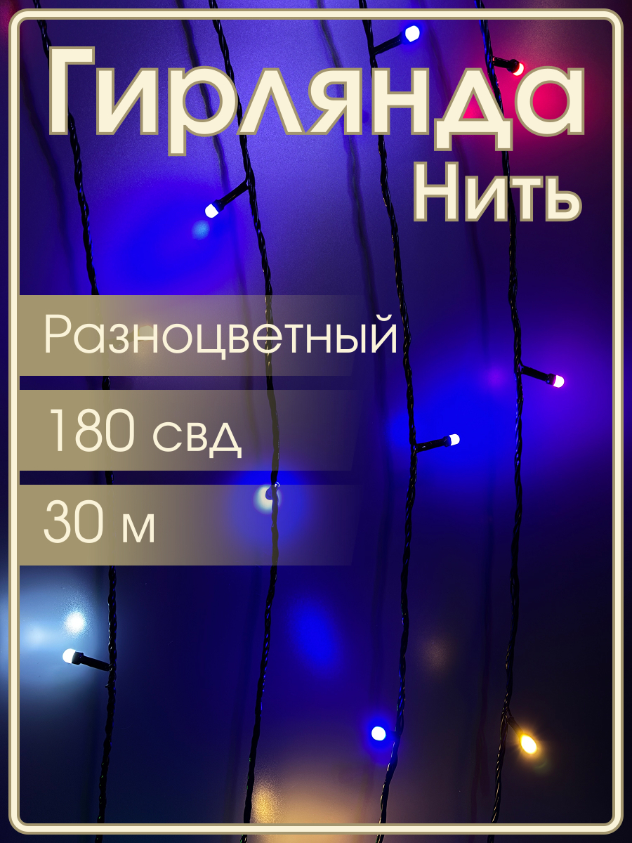 Гирлянда 180 свд матовых d6.5, 30 метров, цветная, уличная, черный провод