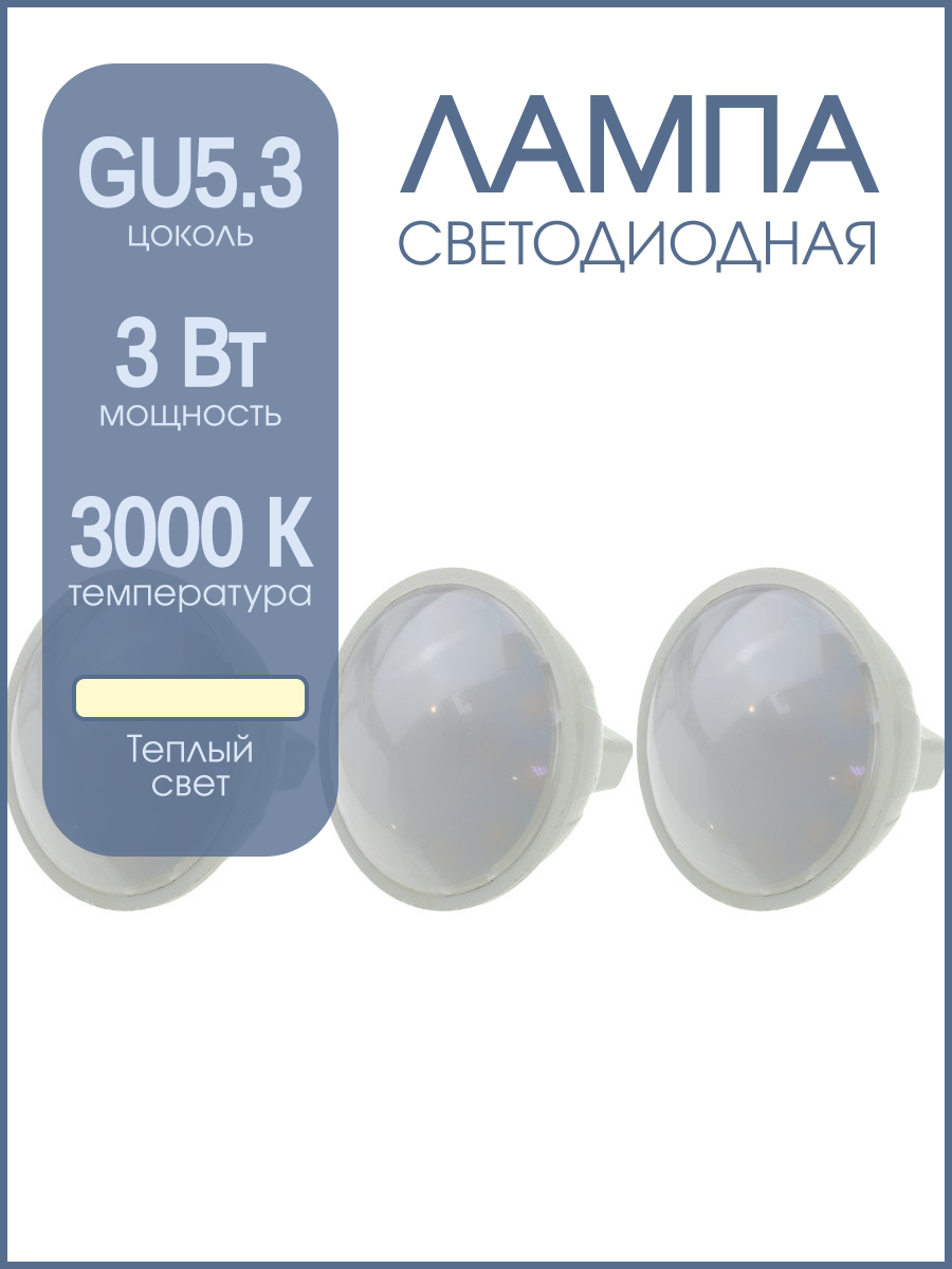 Лампа светодиодная LED-MR16-120 3Вт 220В GU5.3 3000К 240Лм Экосвет, упаковка 3шт