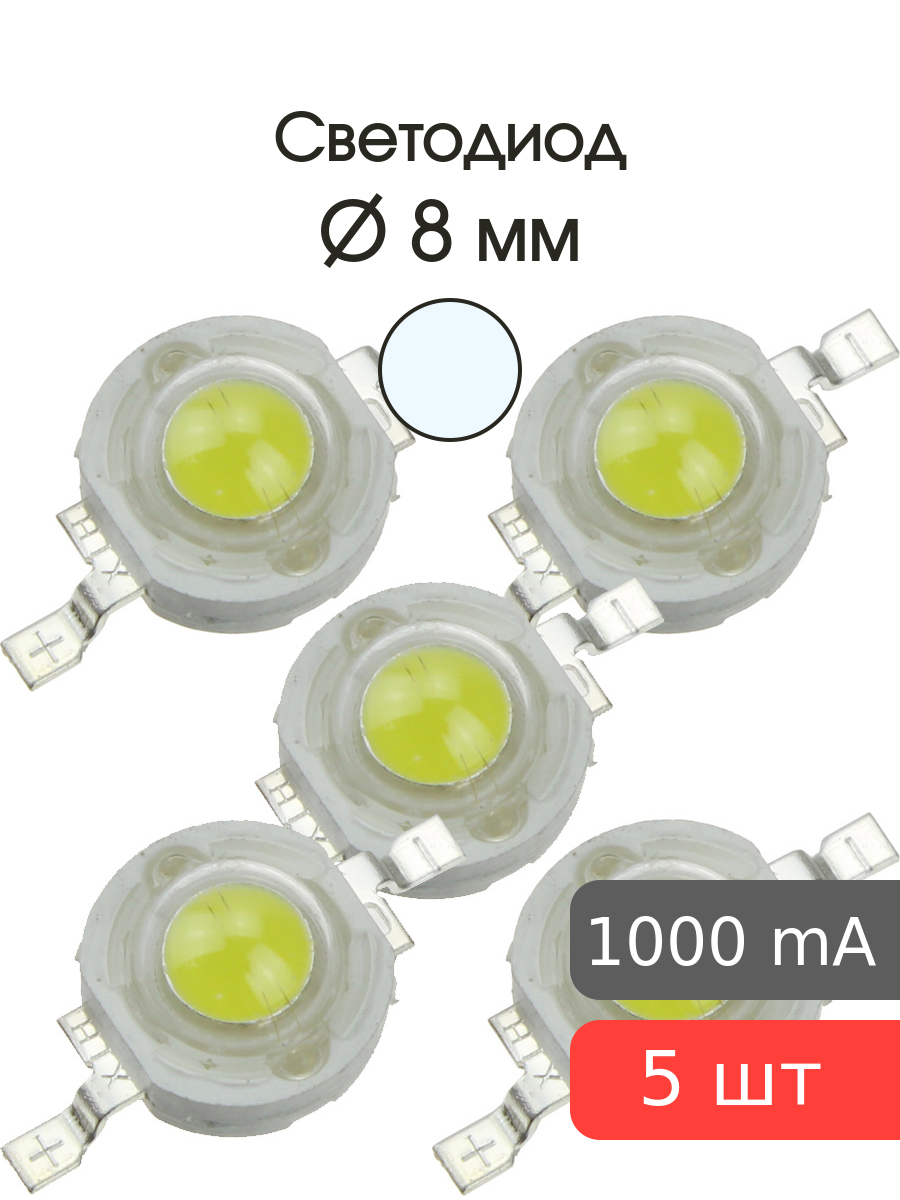 Светодиод 5W 400-450Lm, холодный, 6500-7000К, упаковка 5 штук