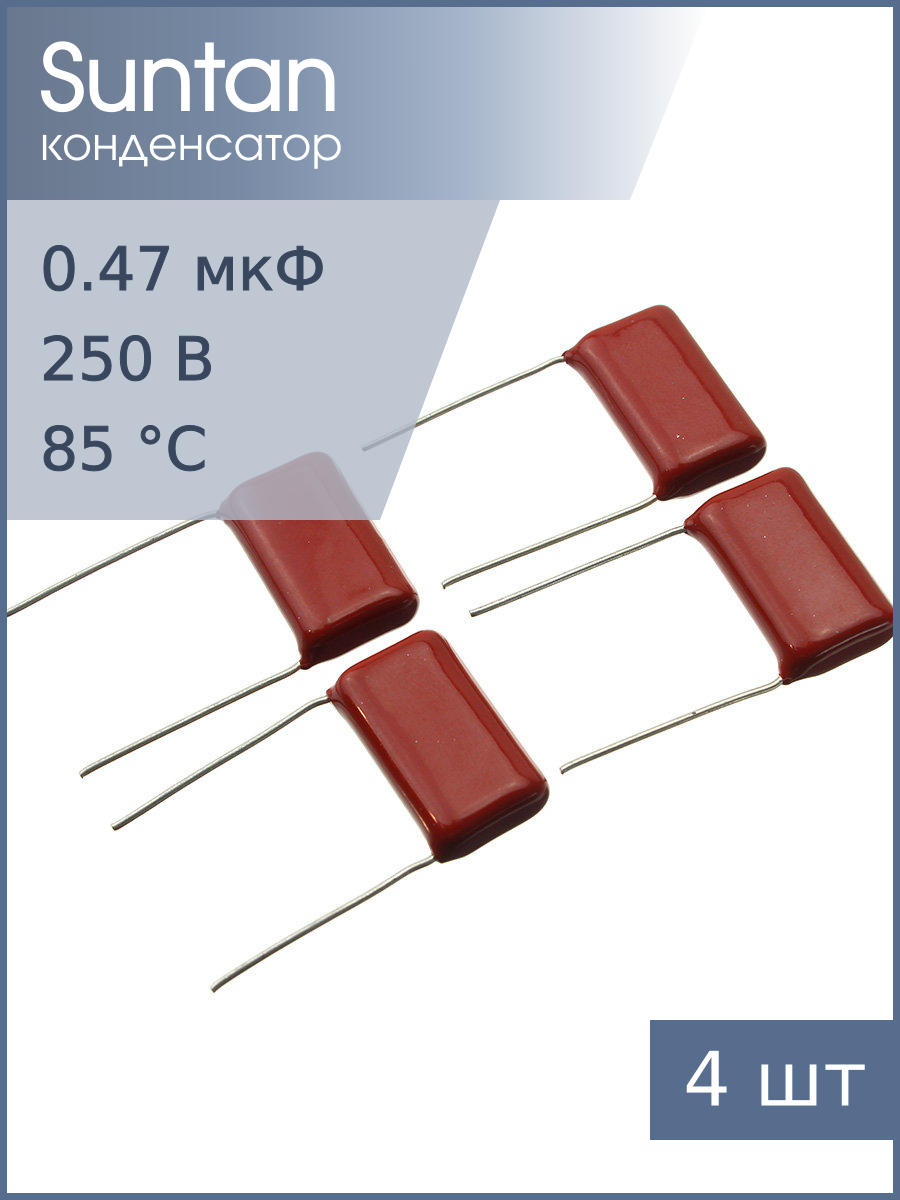 Конденсатор 0.47мкФ 250В Vdc 10% (упаковка 4шт) Suntan TS02002E474KSB0E0R К73-17имп