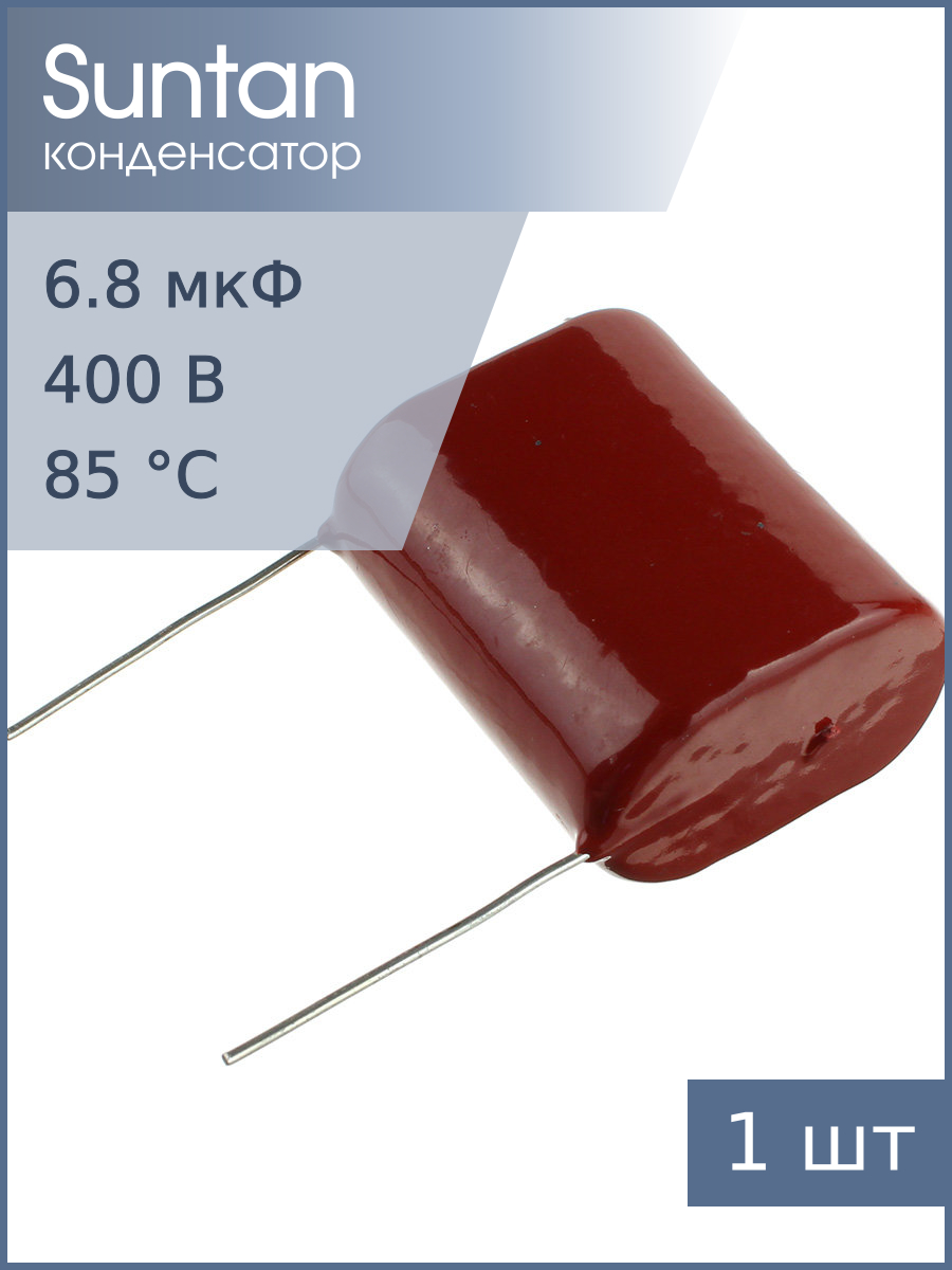 Тип Конденсатор Конденсатор металлоплёночный полиэтилентерефталатный 6.8мкФ 400В ±10% шаг выводов 31мм 85°С россыпь