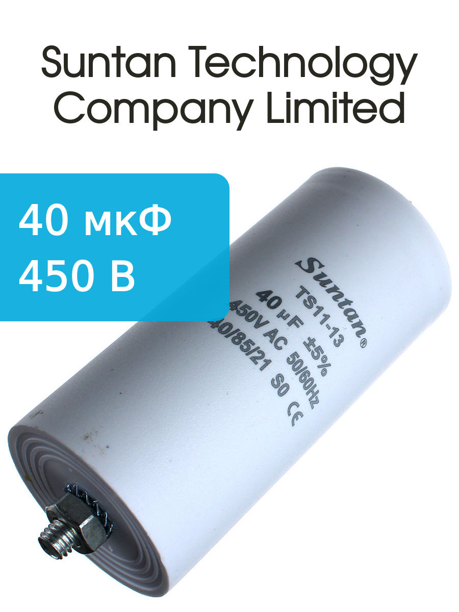 Конденсатор пусковой 40мкф 450В 5%, Suntan TS1113Q0306JSB000R вывода нож, болт