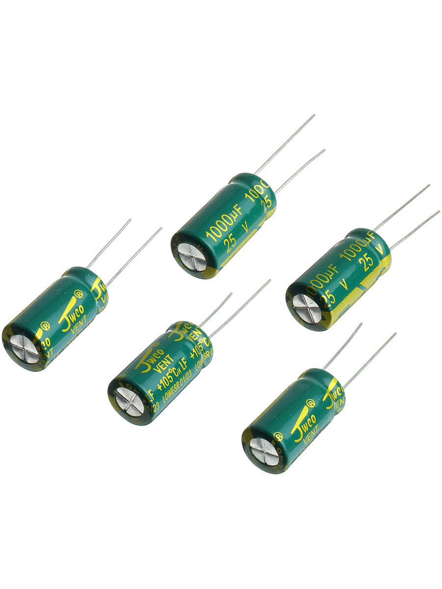 Тип Конденсатор алюминиевый электролитический 1000мкФ 25В ±20% (10х20мм) радиальный, шаг 5мм 0.095Ом 1450мА 4000час 105C россыпь