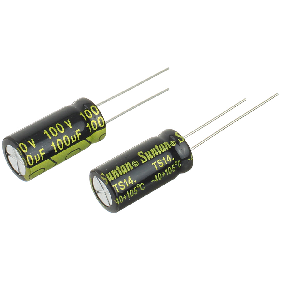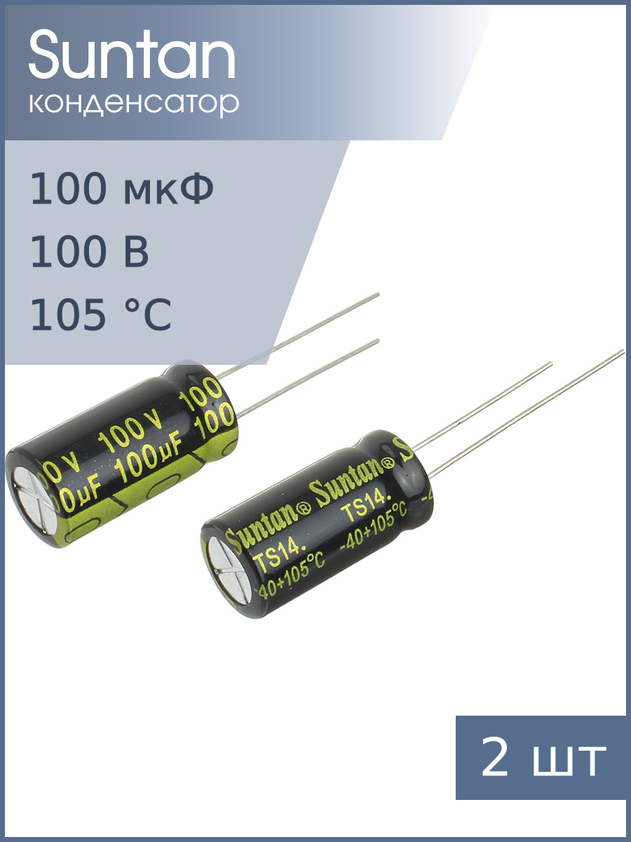Конденсатор 100мкФ 100В 10*20мм 105С (упаковка 2шт) Suntan TS14012A101MSB0B0R 220мА 2000час