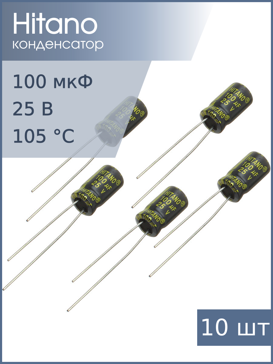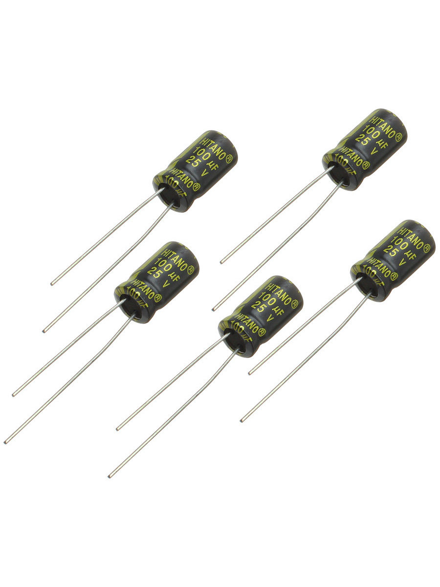 Конденсатор 100мкФ 25В 6.3*11мм 105C (упаковка 5шт) Hitano EXR101M25B 370мА 2000час