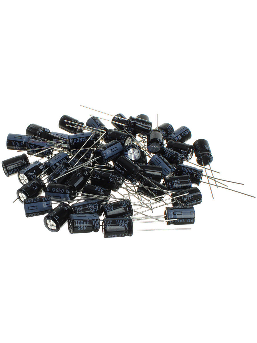 Конденсатор 100мкФ 35В 8*11мм 105С (упаковка 50шт) Yageo SH035M0100B3F-0811 190мА 2000час