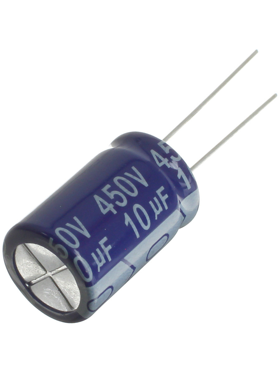 Конденсатор электролитический 10мкФ 450В, 13*20мм 105С, Suntan TS13D42W100MSB0B0R 280мА 8000час