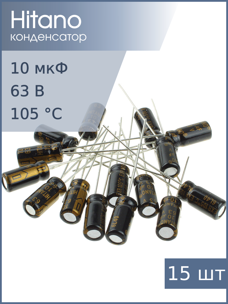| Комплектация | Конденсатор Hitano EXR100M63B 15шт |