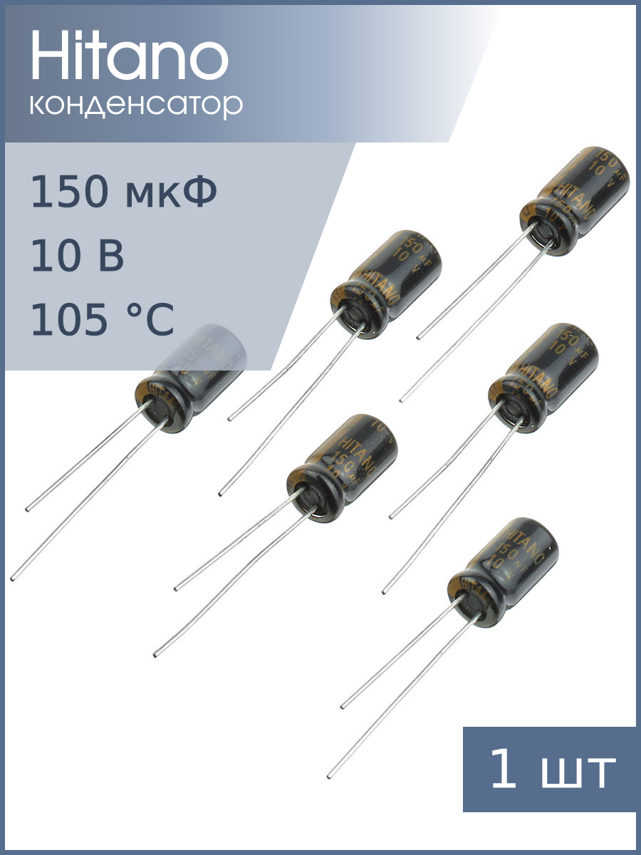Конденсатор электролитический Конденсатор 150мкФ 10В, 6.3*11мм 105C, (упаковка 6шт) Hitano EXR121M10B, 290мА 2000час