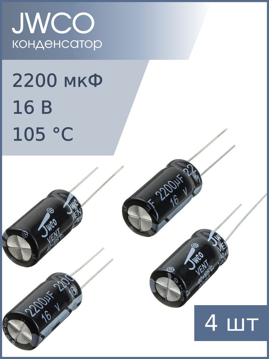 Конденсатор 2200мкФ 16В 10*20мм 105С (упаковка 4шт) Jwco KM222M1CBKJ1020VBK 920мА 2000час