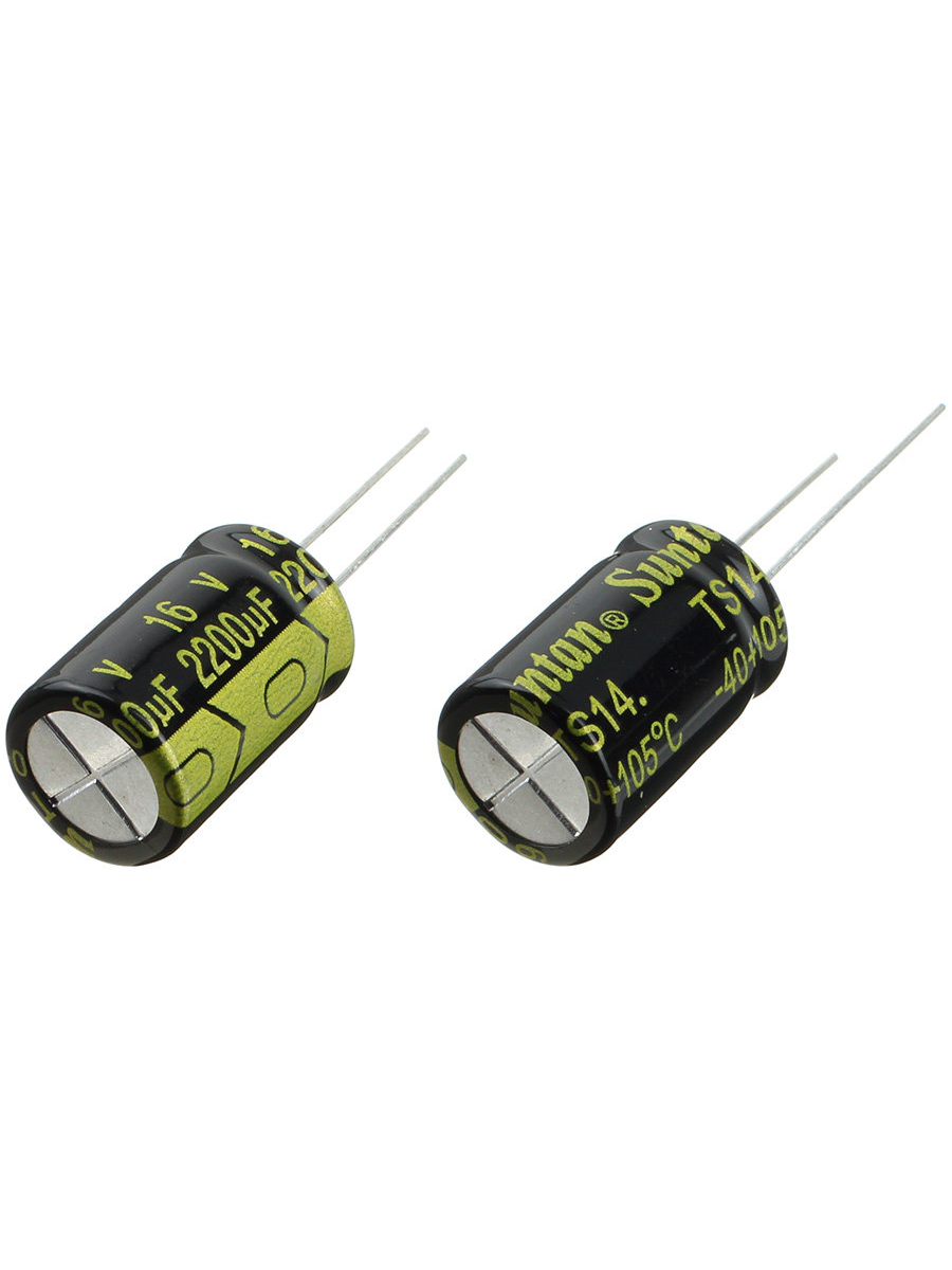 Конденсатор электролитический 2200мкФ 16В, 13*20мм 105С, Suntan TS14011C222MSB0B0R 700мА 2000час (упаковка 2шт)