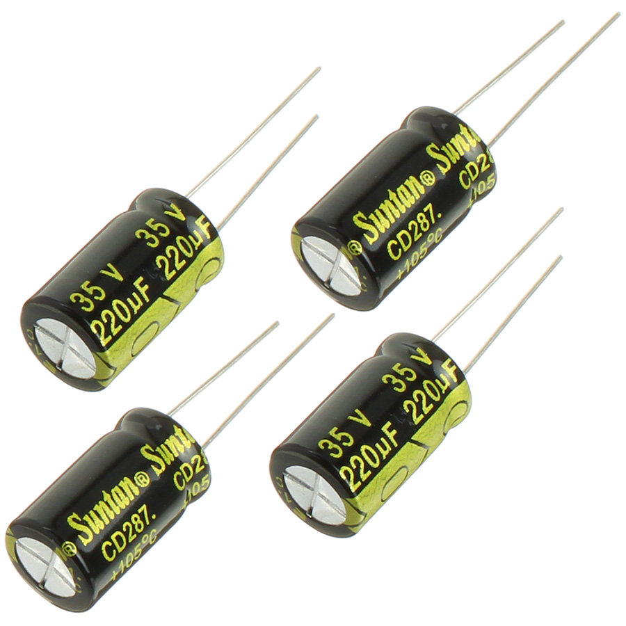 Конденсатор 220мкФ 35В 10*17мм 105С (упаковка 4шт) Suntan TS13DJ1V221MSB0B0R 770мА 3000час
