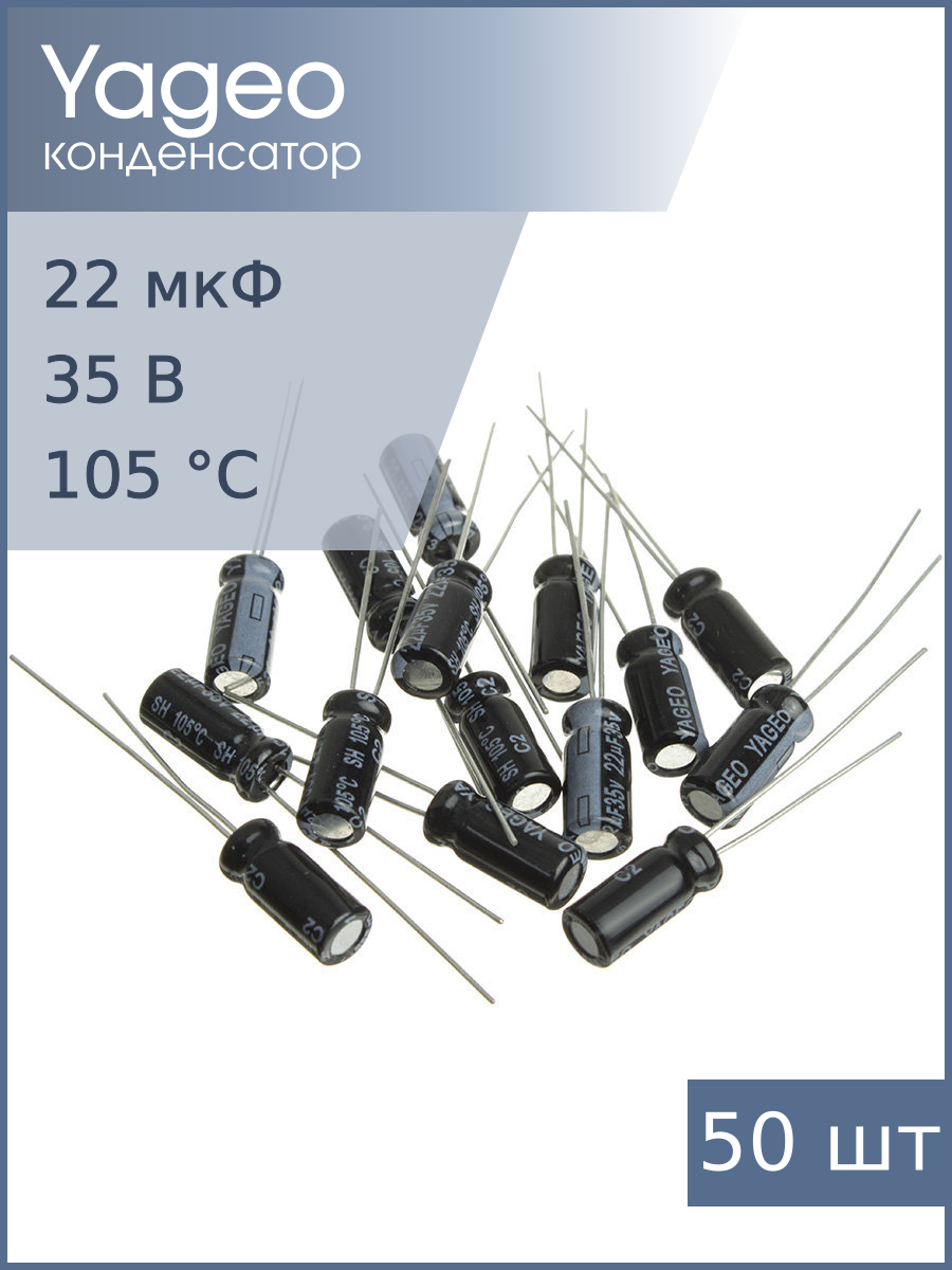 | Комплектация | Конденсатор Yageo SH035M0022B2F-0511 50шт |