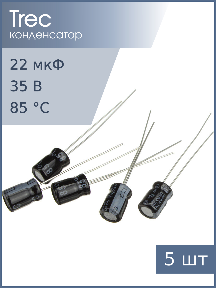 Конденсатор 22мкФ 35В 6*7мм (упаковка 5шт) TREC SS-35-22 54мА 2000час
