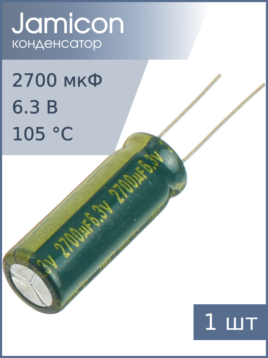 Конденсатор электролитический 2700мкФ 6.3В, 1028R, 105С, WLR272, Jamicon