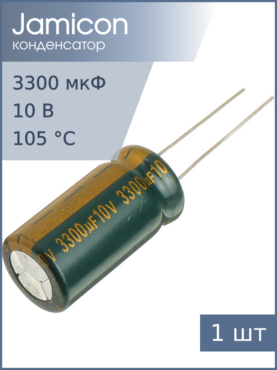 Конденсатор 3300мкФ 10В 12.5*25мм 105С Jamicon WL 2650мА 2000час