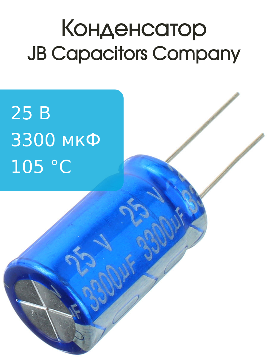 Конденсатор 3300мкФ 25В 16*25мм 105С JB JRB1E332M07501600250000B 1000мА 2000час
