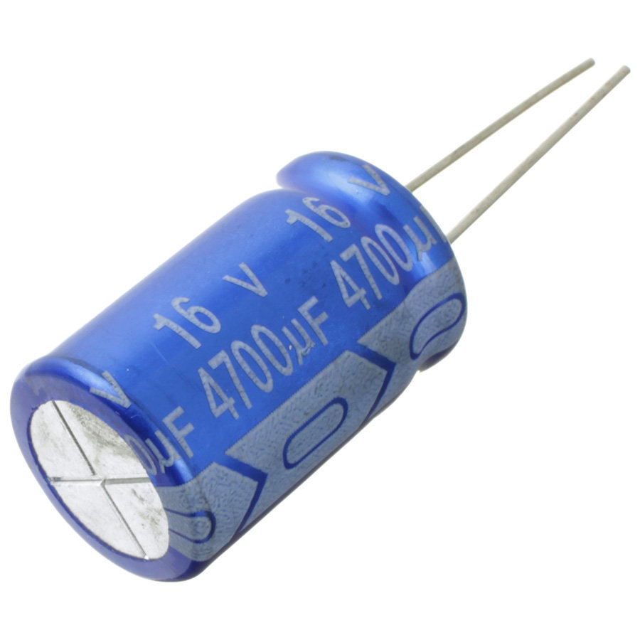 Тип Конденсатор электролитический алюминиевый 4700мкФ 16В ±20% (16х25)мм радиальный, шаг 7.5мм 1050мА 2000час 105°C