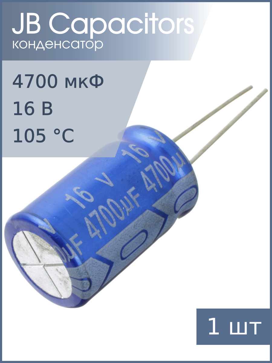 Конденсатор 4700мкФ 16В 16*25мм 105С JB JRB1C472M07501600250000B 1050мА 2000час