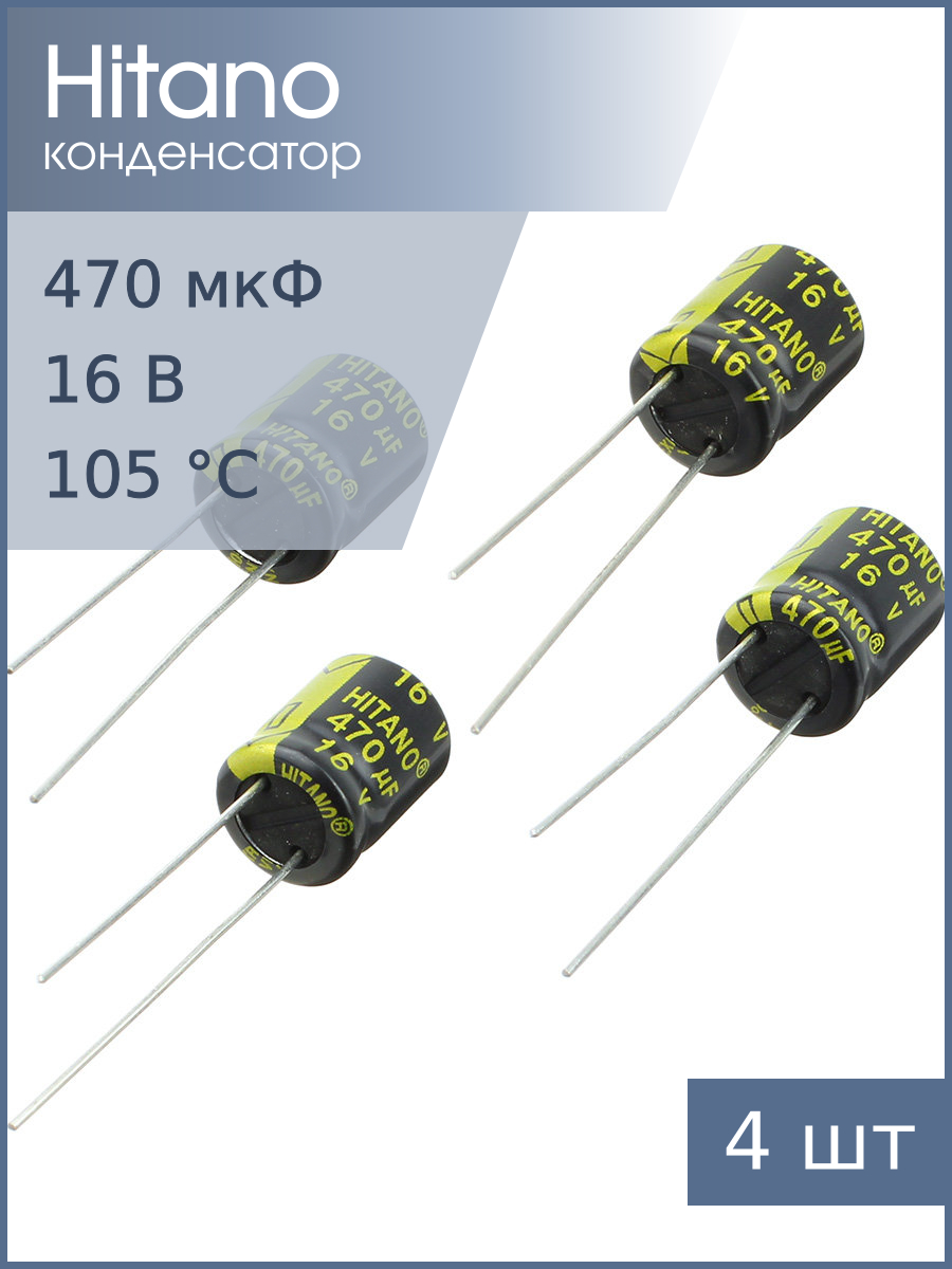 Конденсатор 470мкФ 16В 10*12.5мм 105С (упаковка 4шт) Hitano EXR471M16B 750мА 5000час