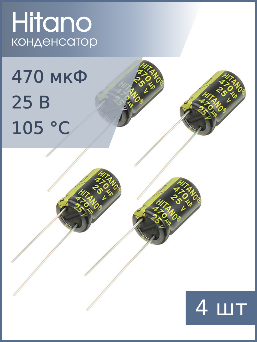 Конденсатор 470мкФ 25В 10*16мм 105С (упаковка 4шт) Hitano EXR471M25B 1010мА 5000час
