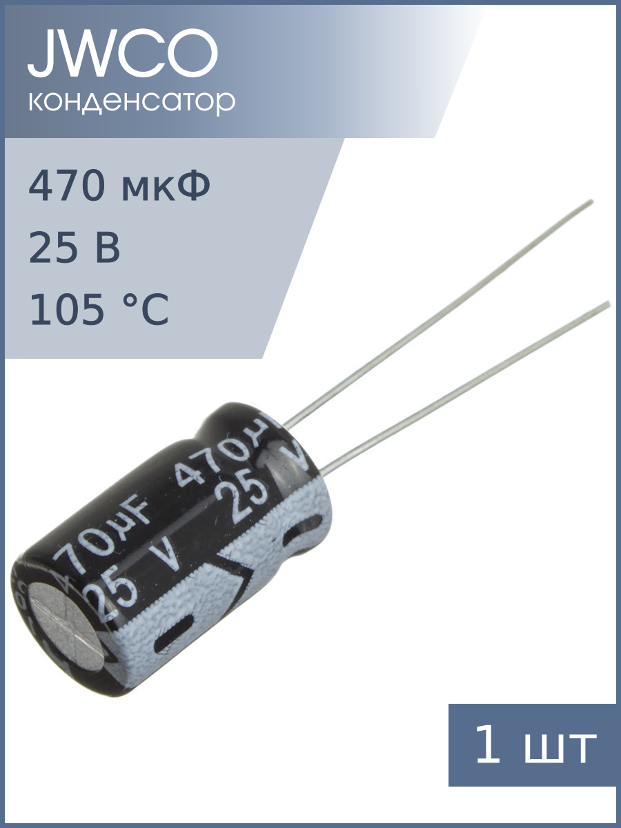 Конденсатор 470мкФ 25В 8*14мм 105С Jwco KM471M1EBKJ0814VBK 410мА 2000час