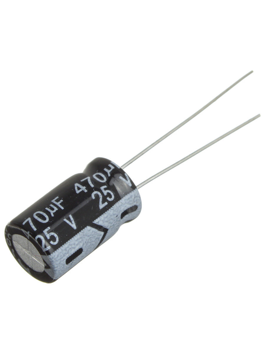Тип конденсатора: Конденсатор алюминиевый электролитический 470мкФ 25В ±20% (8х14мм) радиальный 3.5мм 2000часов 105°C россыпь