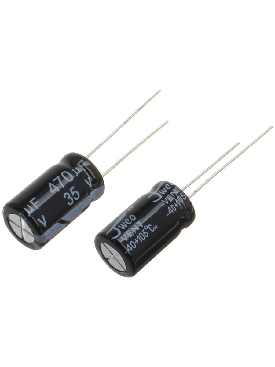 Конденсатор 470мкФ 35В 10*17мм 105С (упаковка 2шт) Jwco KM471M1VBKJ1017VBK 520мА 2000час