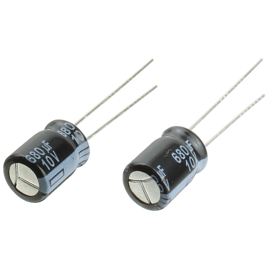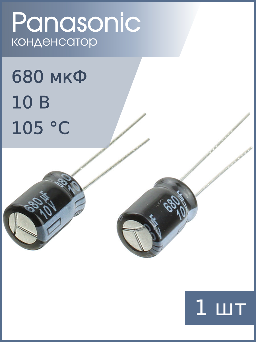 Конденсатор электролитический 680мкФ 10В, 8*12мм 105С, (упаковка 2шт) Panasonic EEUFR1A681, 950мА 6000час
