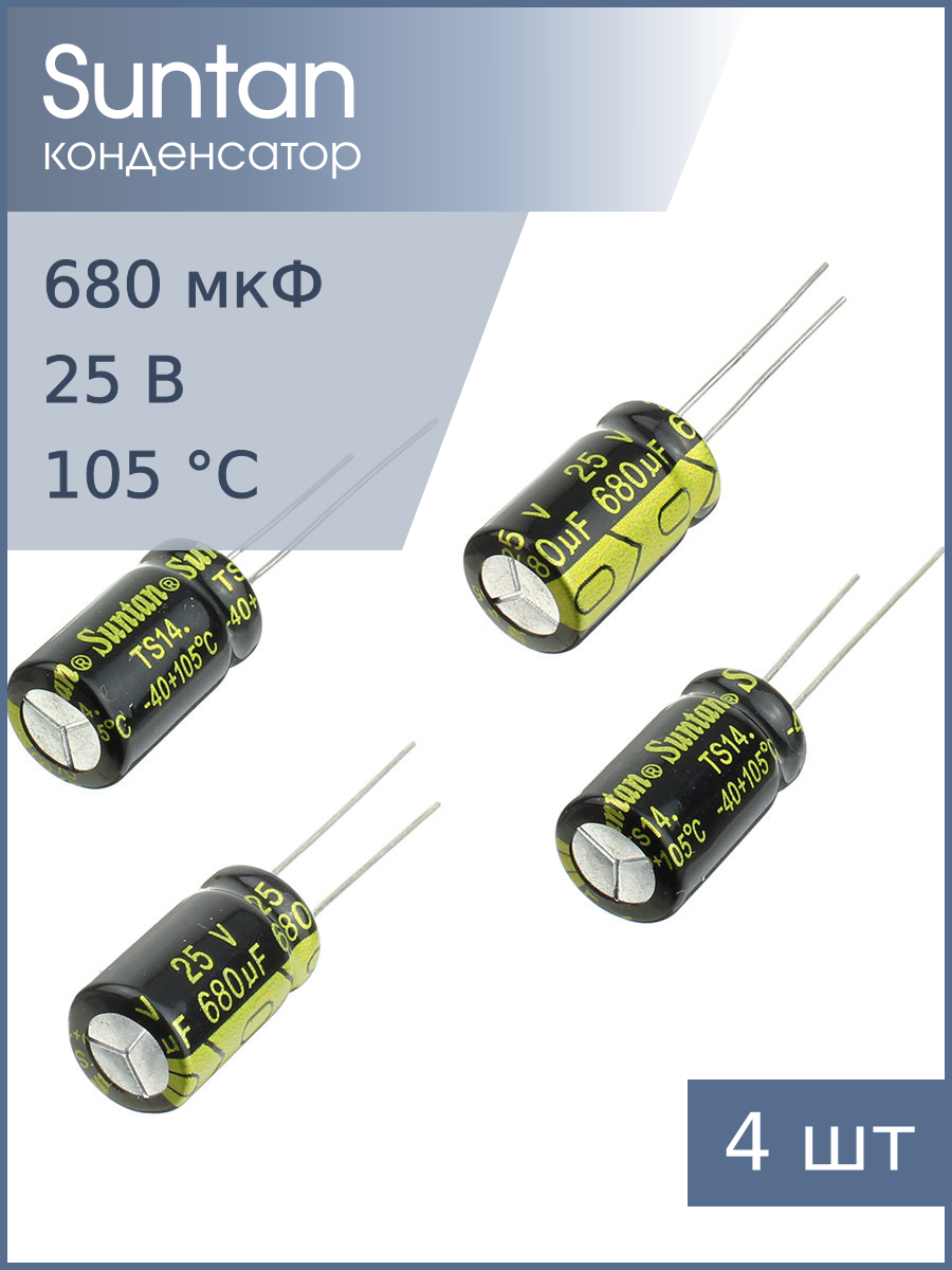 | Комплектация | Конденсатор Suntan TS14011E681MSB0B0R 4шт |