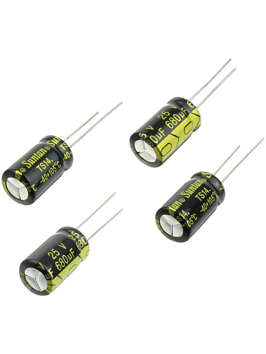 Конденсатор 680мкФ 25В 10*16мм 105С (упаковка 4шт) Suntan TS14011E681MSB0B0R 380мА 2000час