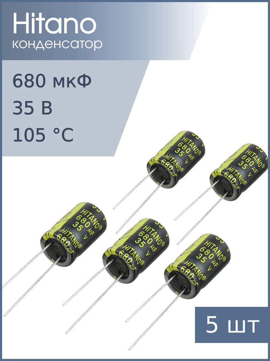 | Комплектация | Конденсатор Hitano EXR681M35B 5шт |