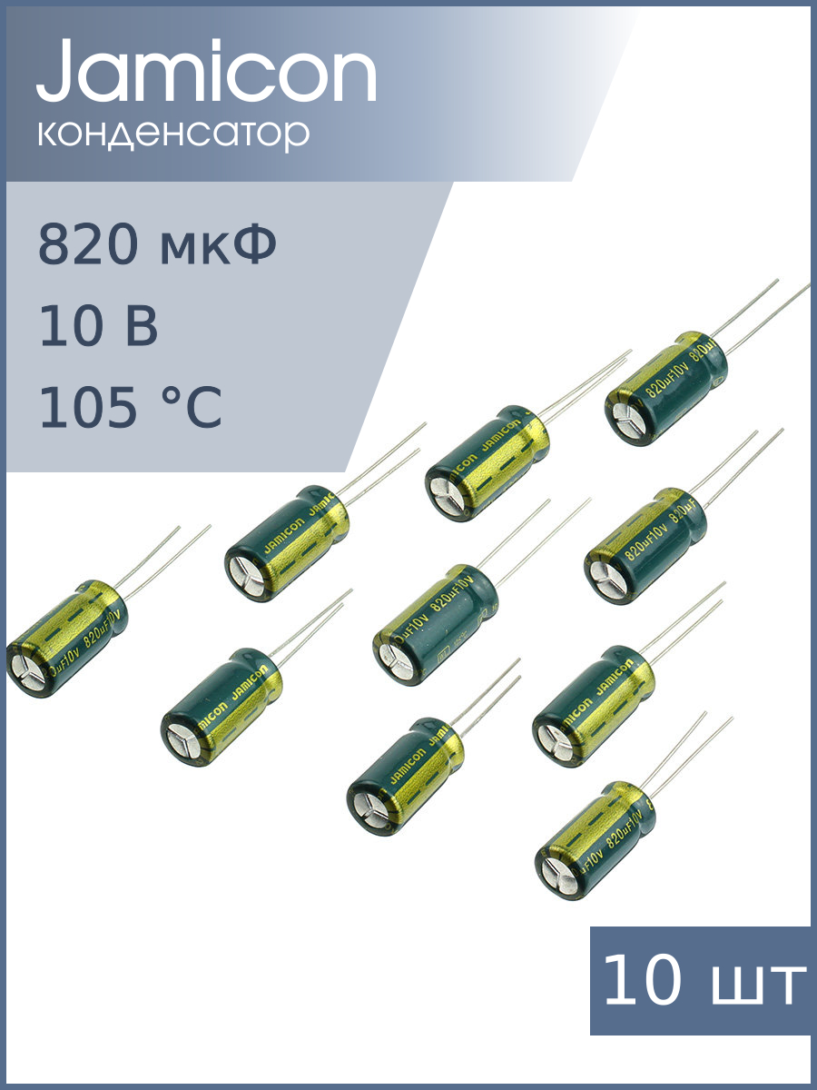 Конденсатор 820мкФ 10В, 8*16мм 105С, (упаковка 10шт) Jamicon WLR821M1AF16R, 990мА 1000час