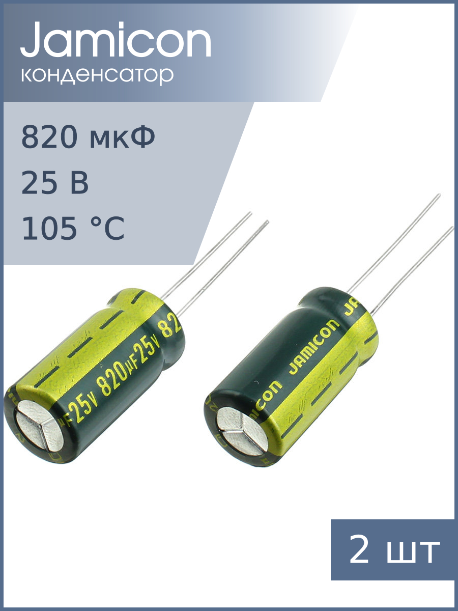 Конденсатор 820мкФ 25В 10*20мм 105С (упаковка 2шт) Jamicon JWL827M025S1ACH20L, 1830мА 2000час