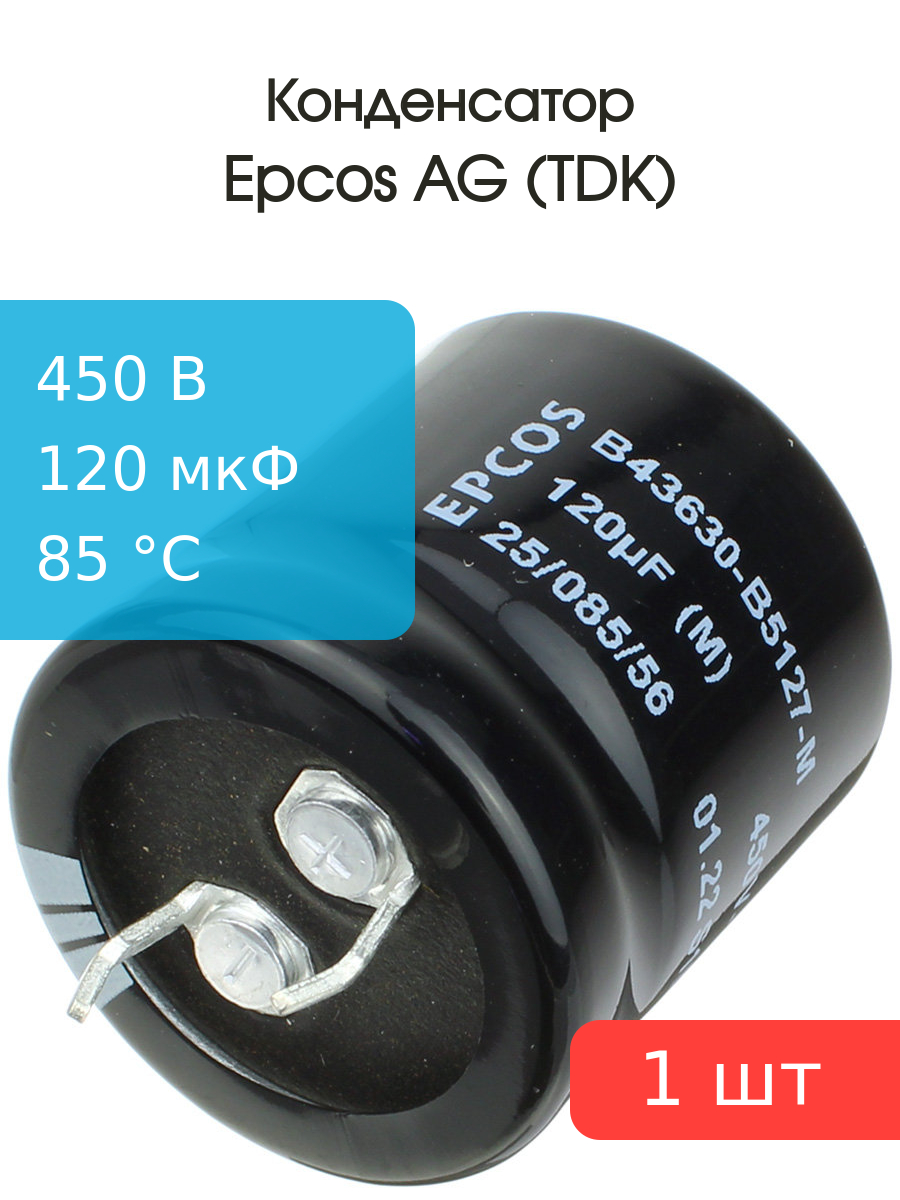 Конденсатор электролитический 120мкФ 450В, 25*25мм 105C Epcos B43630B5127M Snap-in, 980мА 2000час