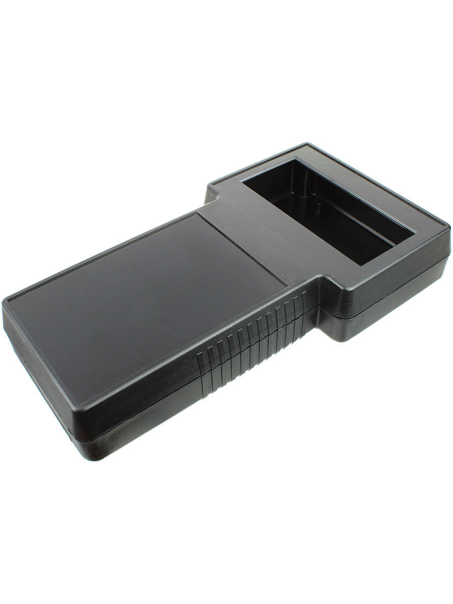 G858B(O)BC — пластиковый корпус черного цвета, производится из прочного ABS пластика. Габаритные размеры составляют: по длине 131мм, по ширине 237мм и по высоте 46мм. На лицевой стороне имеется вырез под дисплей. Корпус оснащен отсеком для питания от пальчиковых батарей. На внутренней поверхности корпуса отлиты стойки для горизонтального размещения печатных плат.