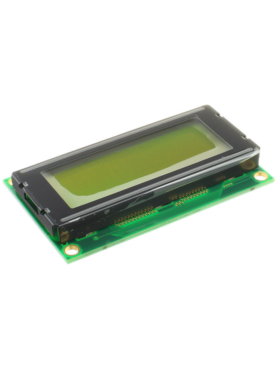 ЖКИ знакосинтезирующий 20 x 4, STN Желто-зеленый Позитивный/прозрачно-отражающий светодиодная подсветка желто-зеленая размеры 77x47 мм, видимая область 60x22 мм, -20...70°C, контактные площадки сверху 16 выводов