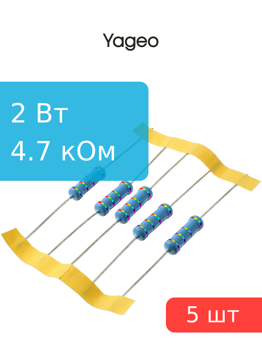 Резистор 4.7кОм 2Вт 5% Yageo MFR200JT-73-4K7 (упаковка 5шт)