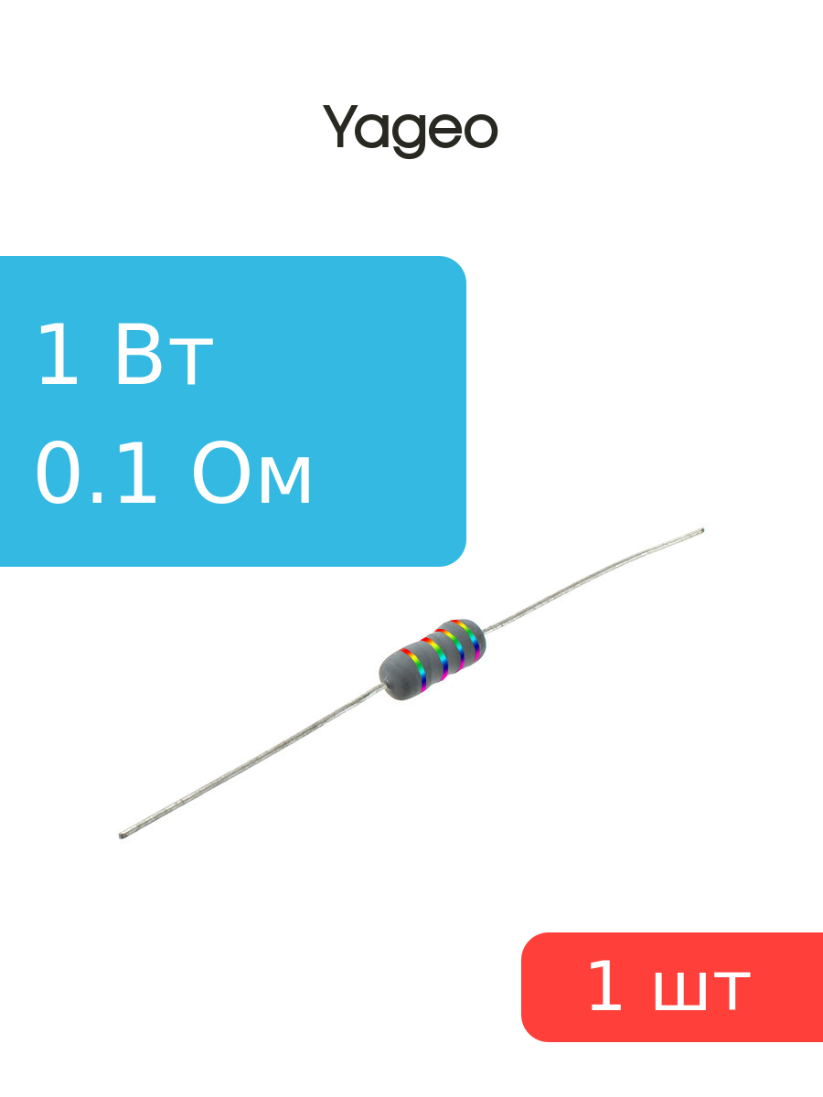 Резистор 0.1Ом 1Вт 5%, Yageo KNP-100JB-73-0R1