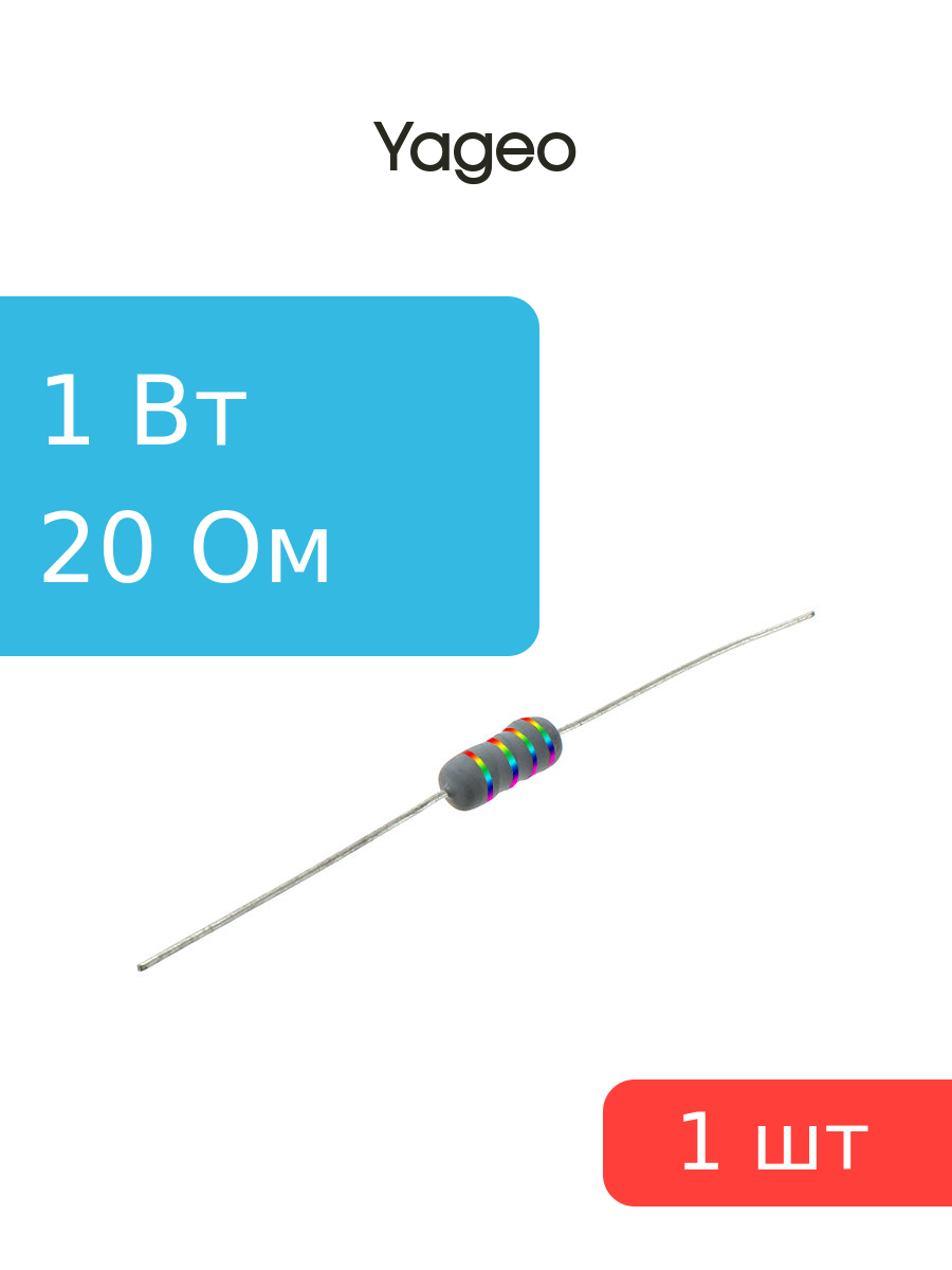 Резистор 20Ом 1Вт 5%, Yageo KNP-100JB-73-20R
