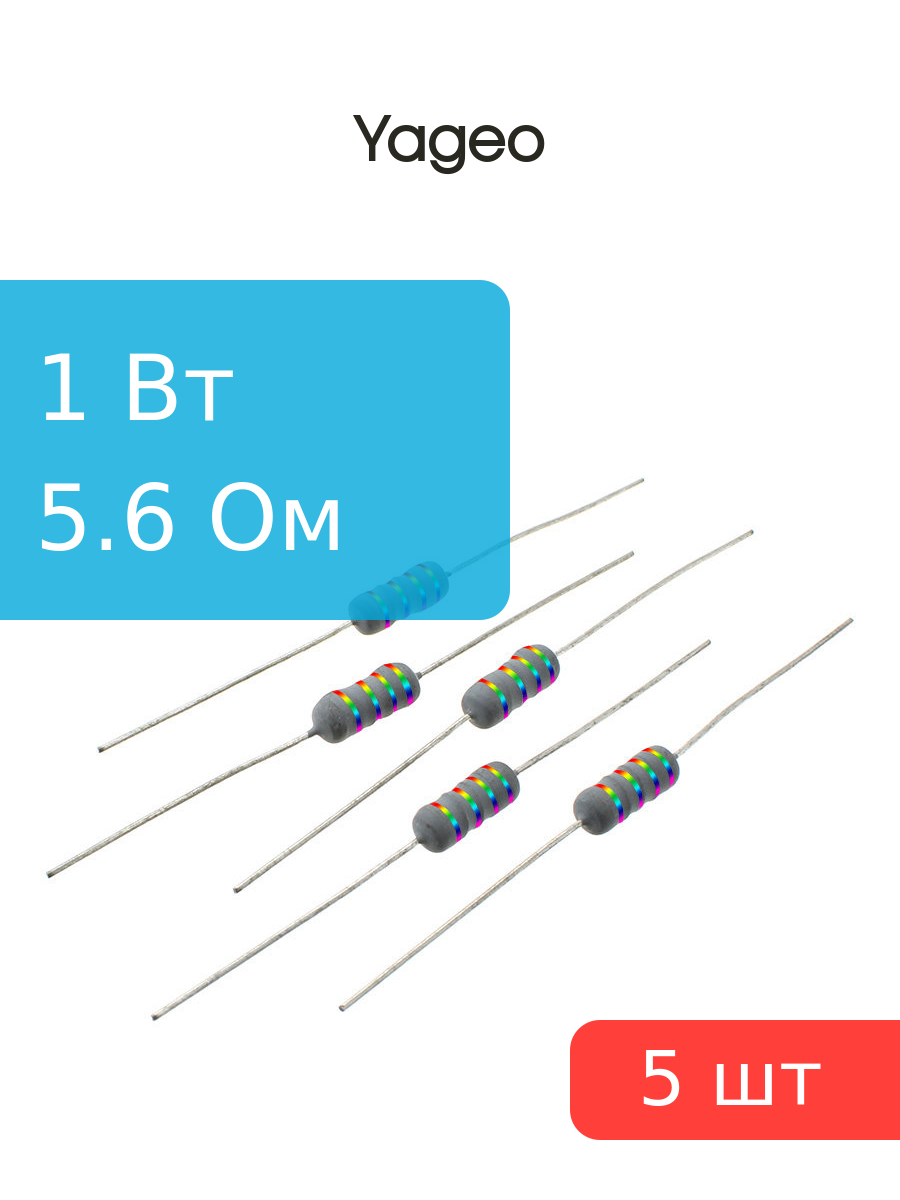 Резистор 5.6Ом 1Вт 5%, Yageo KNP-100JB-73-5R6 (упаковка 5шт)