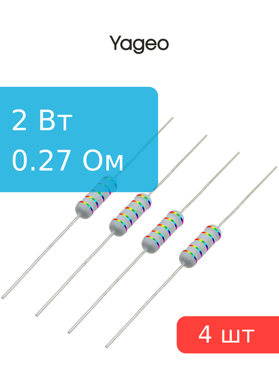 Резистор постоянный проволочный 0.27Ом 2Вт 5%, Yageo KNP-200JB-73-0R27 (упаковка 4шт)
