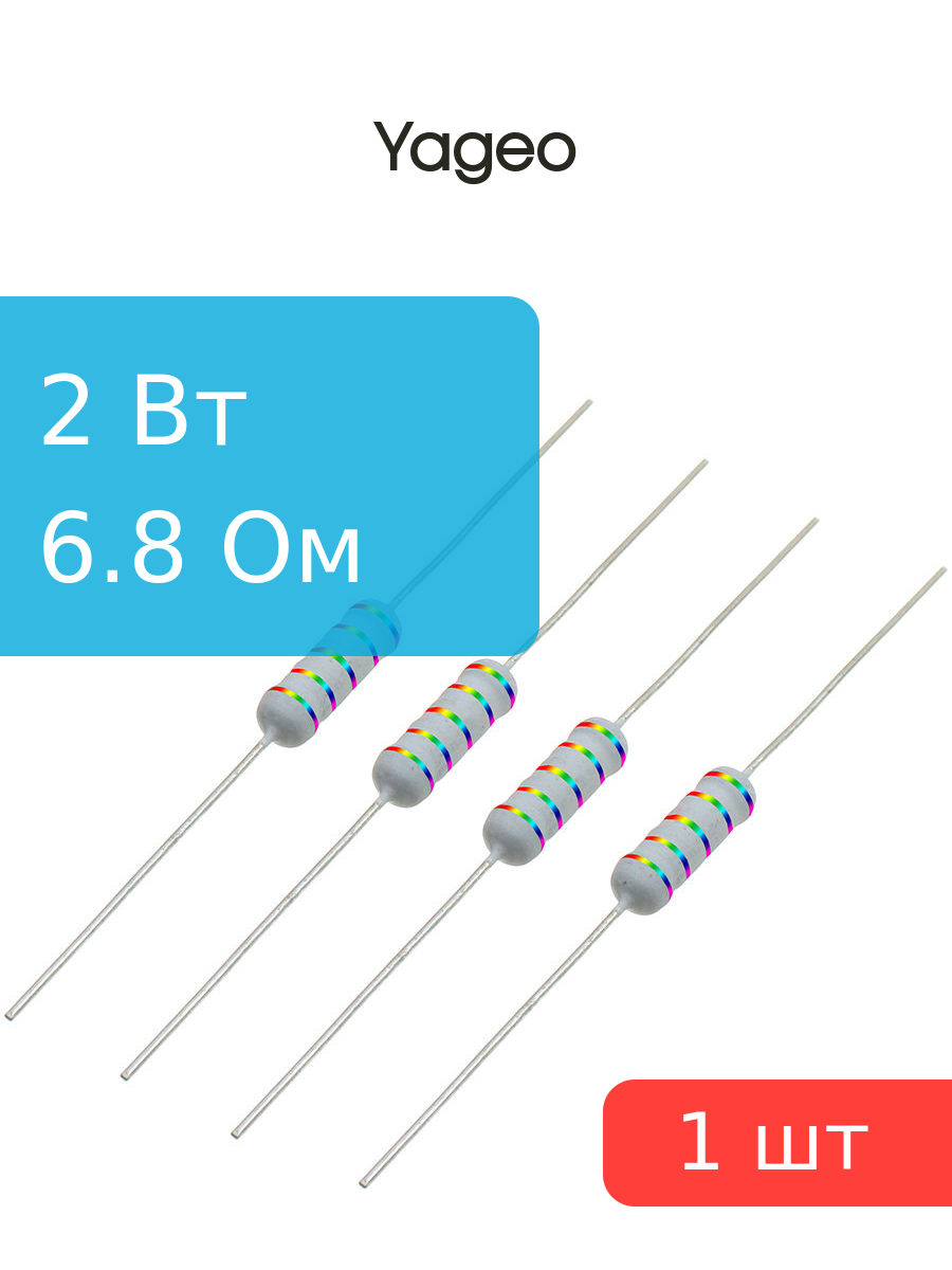 Резистор 6.8Ом 2Вт 5%, Yageo KNP-200JB-73-6R8 (упаковка 4шт), проволочный