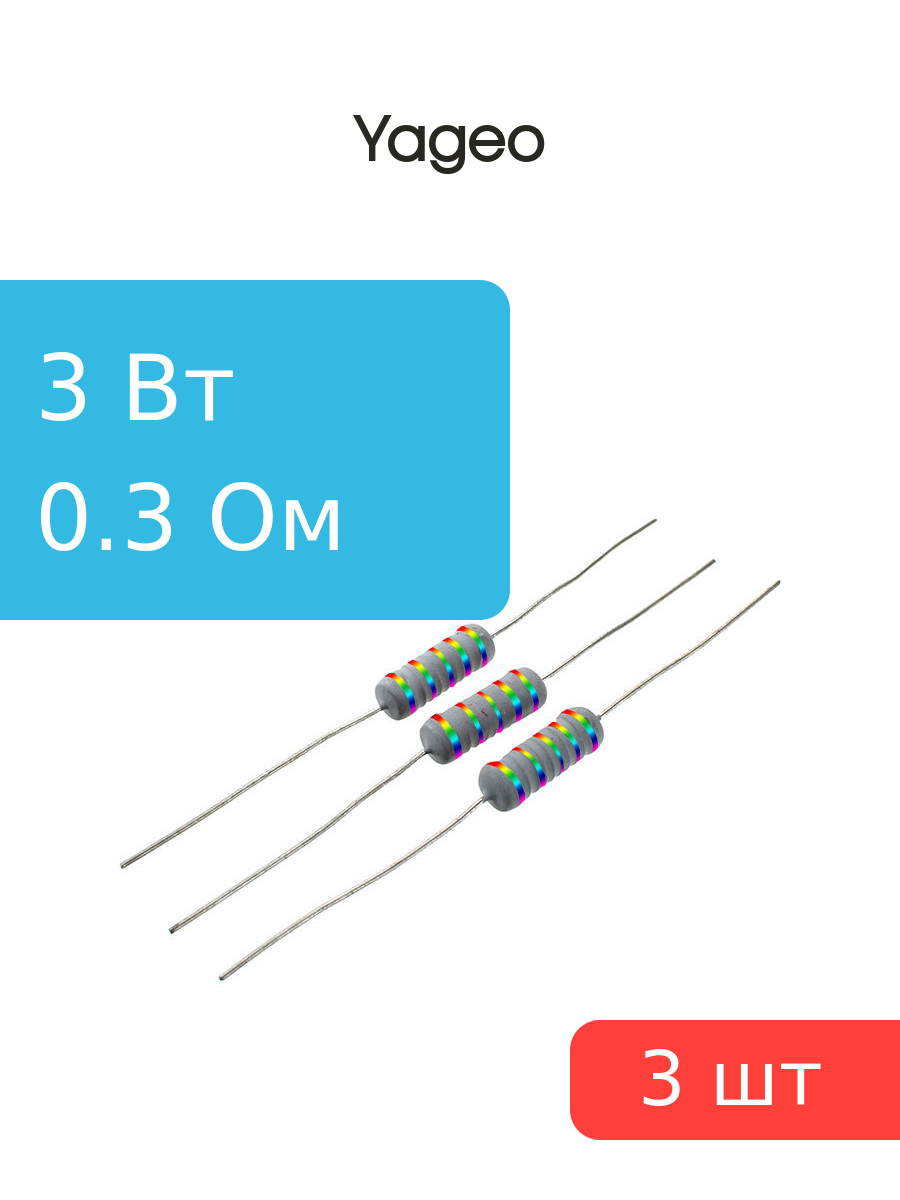 Резистор 0.3Ом 3Вт 5%, Yageo KNP-300JB-73-0R3 (упаковка 3шт) проволочный