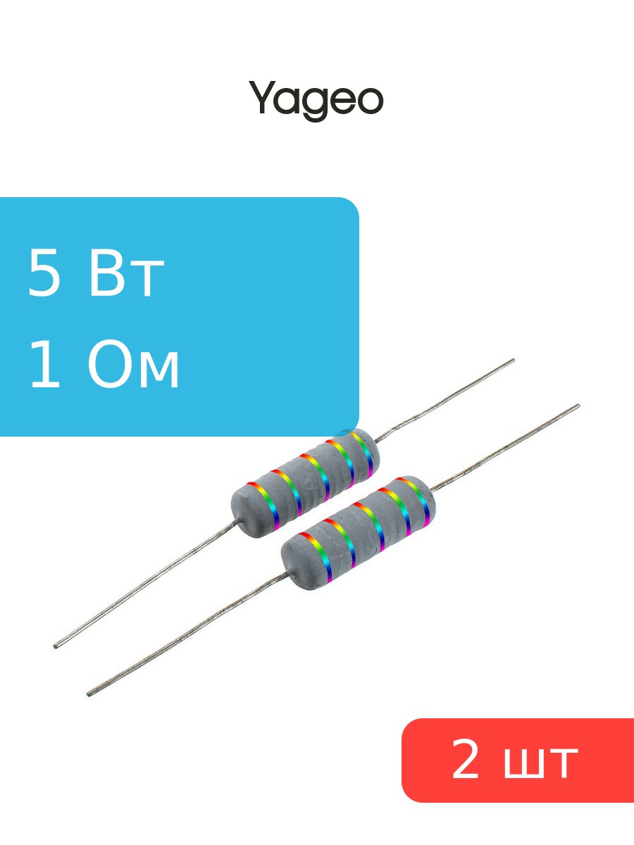 Резистор 1Ом 5Вт 5%, Yageo KNP-500JB-91-1R (упаковка 2шт) проволочный
