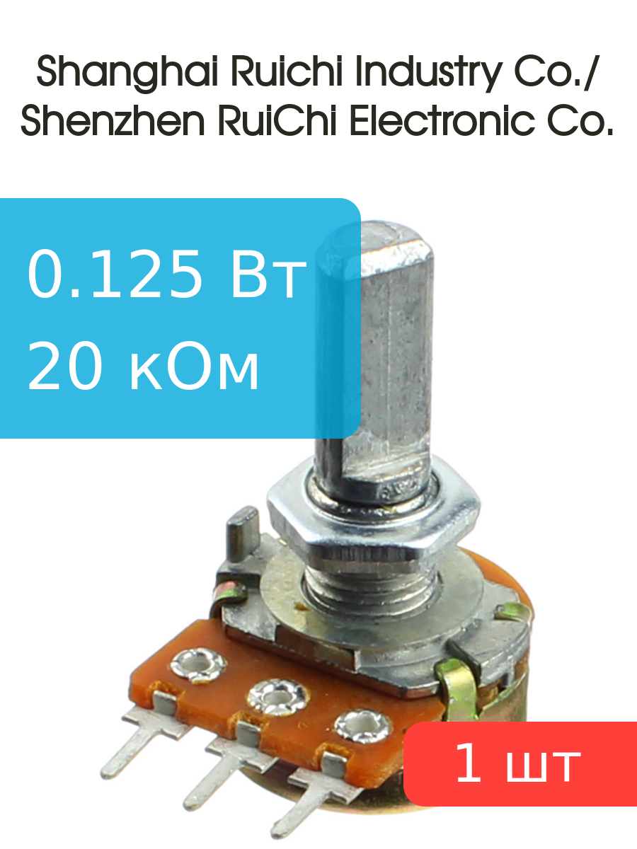 Резистор регулировочный 20кОм, L 20мм, 16K1-B20K L20F (с лыской)