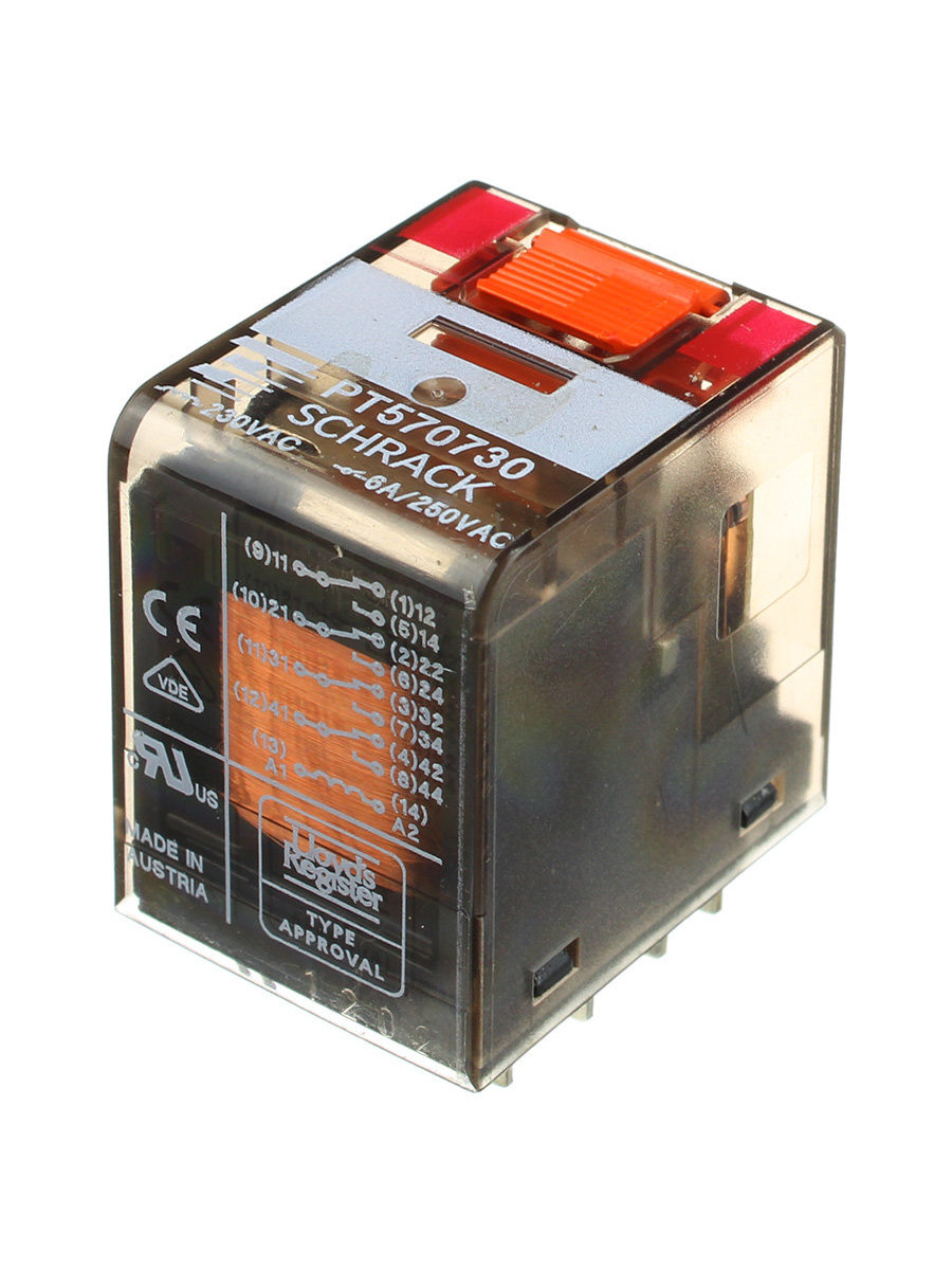 Реле 220В, 4 группы 6А 230В AC Schrack PT570730 (9-1419111-1) 4PDT 4С