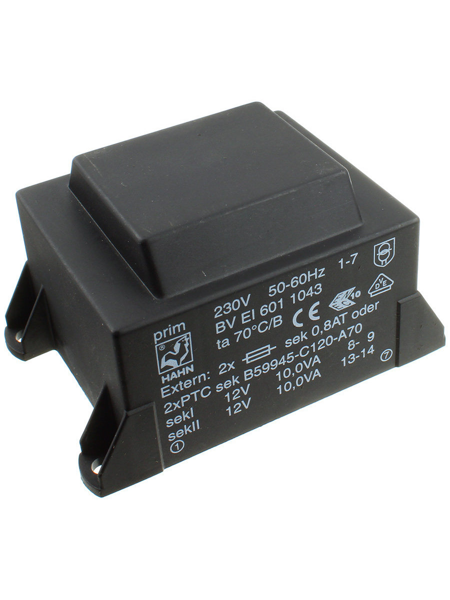 Трансформатор 2х12В, 2х833мА 20VA BVEI 601 1043 HAHN, Германия